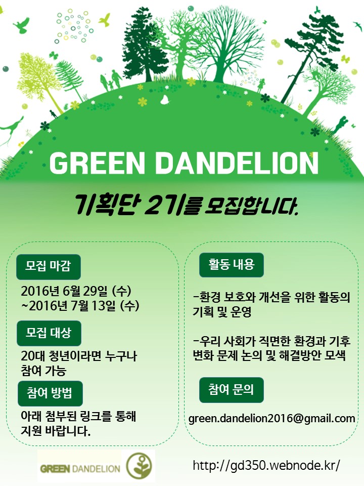 그린단델리온 기획단2기 모집 (2016.6.29~7.13)