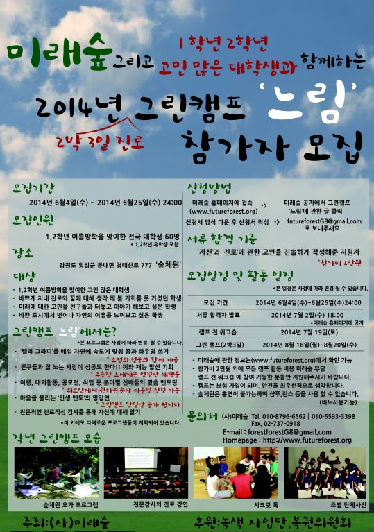 미래숲 2014 그린캠프 참가자를 모집합니다!